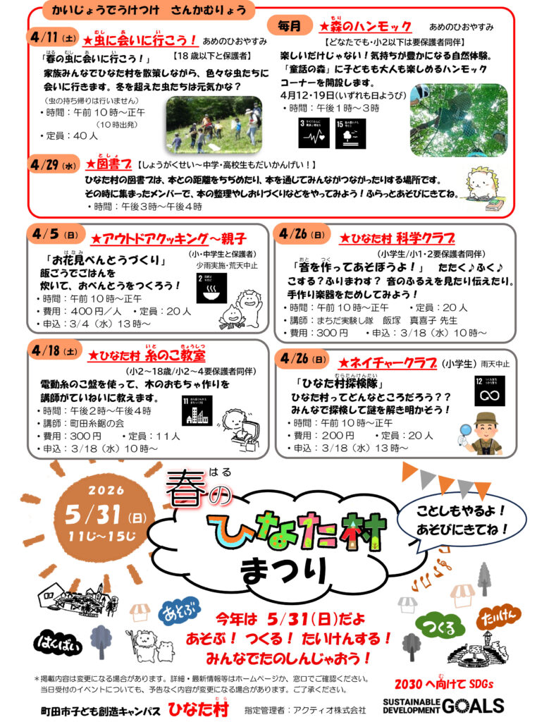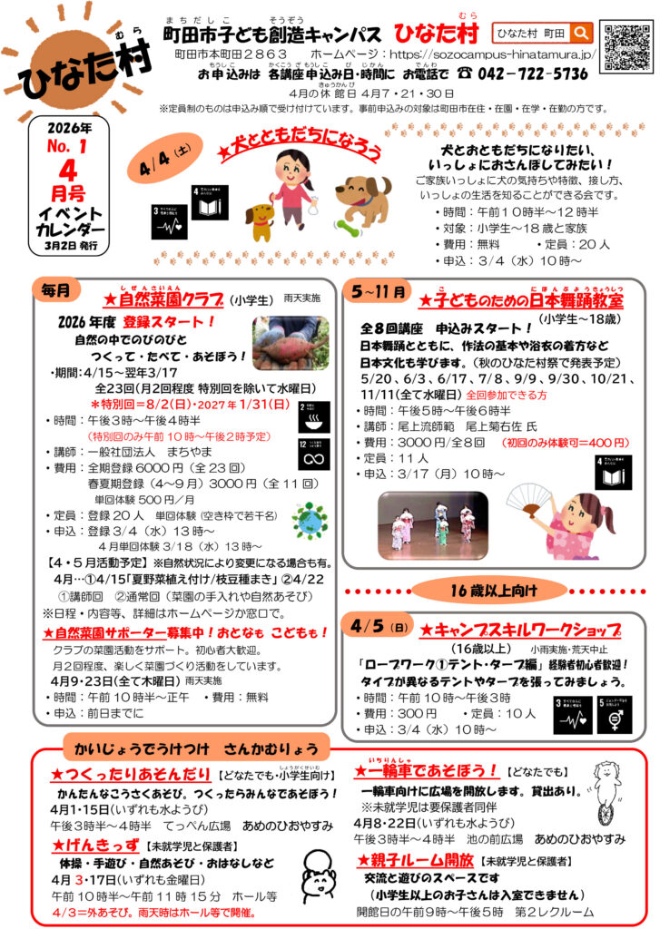 ひなた村4月のイベント情報です!